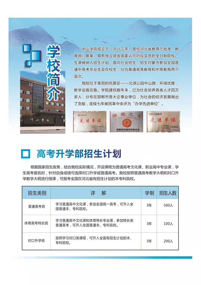 邯鄲中山學院2022招生簡章