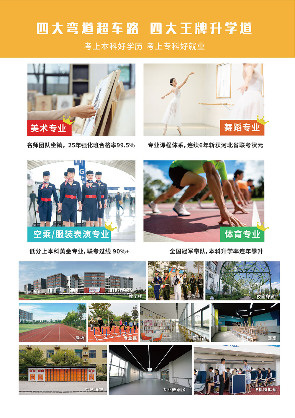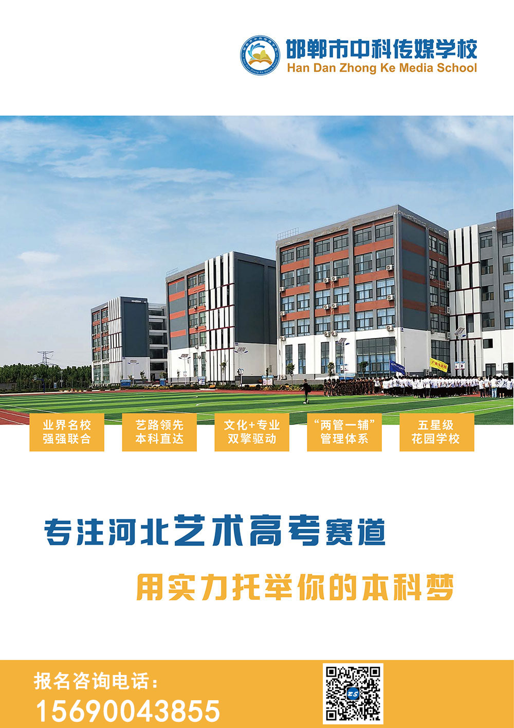 邯鄲中科傳媒學校以"藝路領(lǐng)先、直達本科"為教學特色,專注于美術(shù)、體育、舞蹈、航空服務等藝術(shù)類高考方向的培養(yǎng),聚焦藝考領(lǐng)域的本科升學,打造職業(yè)教育創(chuàng)新標桿。