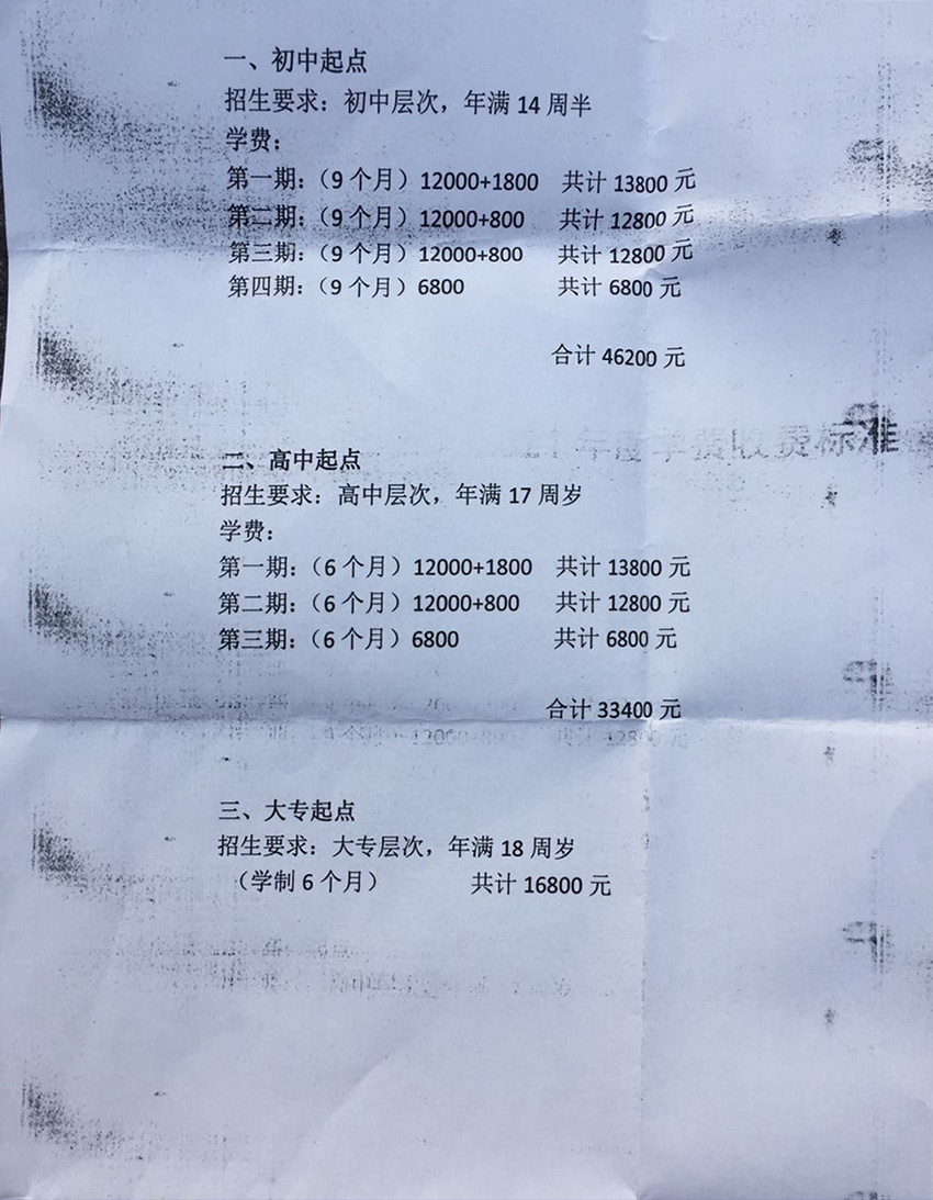 4、北大青鳥特色班: 學制三年,每年學費7800元(已刨除國補)住宿費每年800元(收前兩年)