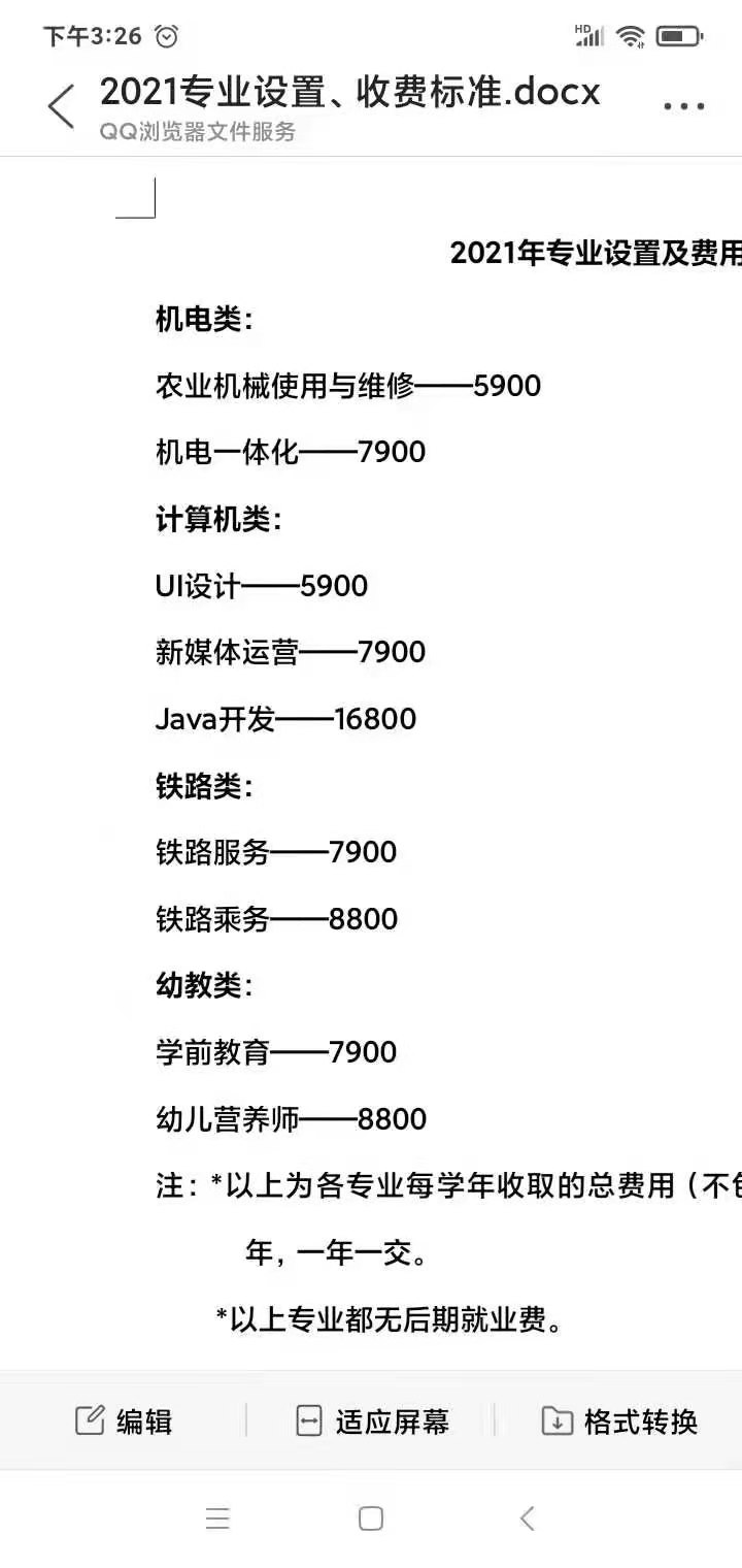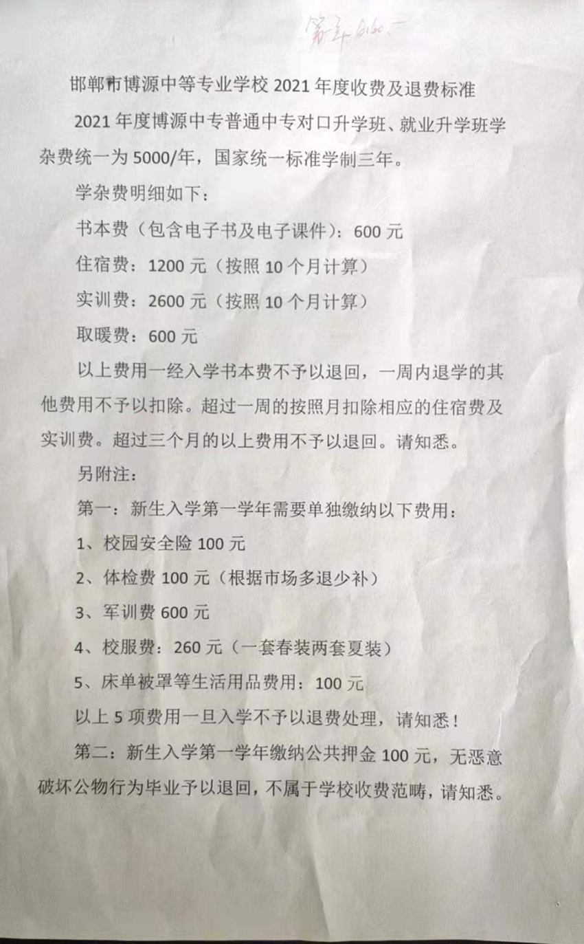 邯鄲市五洲中等專業學校學校2021年收費標準: