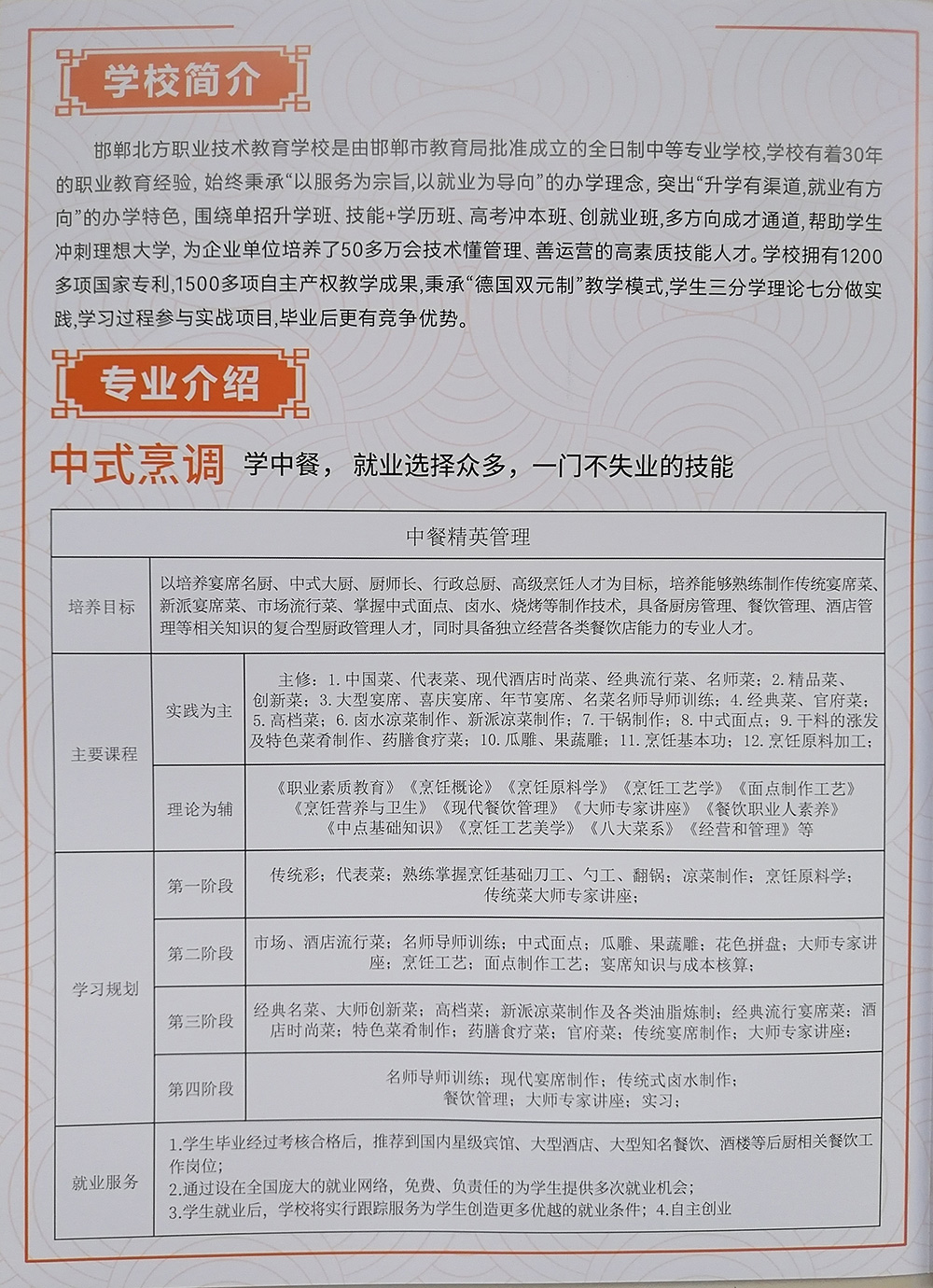 涉縣初三女孩學西點烘焙專業、中餐烹飪專業:邯鄲北方學校烹飪專業招生簡章